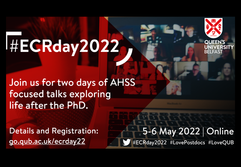The event was organised by Dr Alison Garden and the #ECRday2022 Team, with support from Professor Ramona Wray, Dr Alice Dubois, Erin Davidson, Jordan McCullough (PhD student in French at Queen's), and Susie Deedigan (PhD student in History at Queen’s). The #ECRday2022 Team included representatives from the Graduate School, Postdoctoral Development Centre (PDC) and Fellowship Academy.