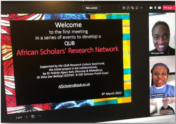 This project was coordinated by three African scholars of different academic disciplines at Queen's, Dr Felicity Agwu Kalu (School of Nursing) Dr Dina Zoe Belluigia (School of Social Sciences, Education and Social Work) and Dr Gift Sotonye-Frank (School of Law), all of whom are members of AfSAI.