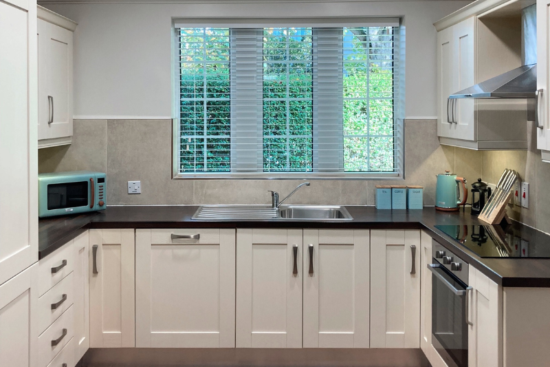 - Cooker, microwave, fridge/freezer, dishwasher, kettle, toaster, iron and ironing board, crockery, cutlery