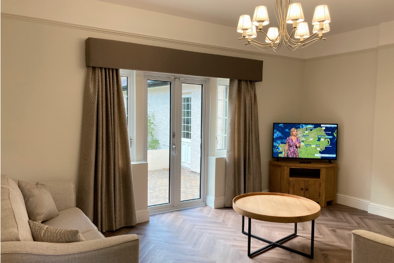 - Furnished with soft seating, gas fire, coffee table and entertainment unit