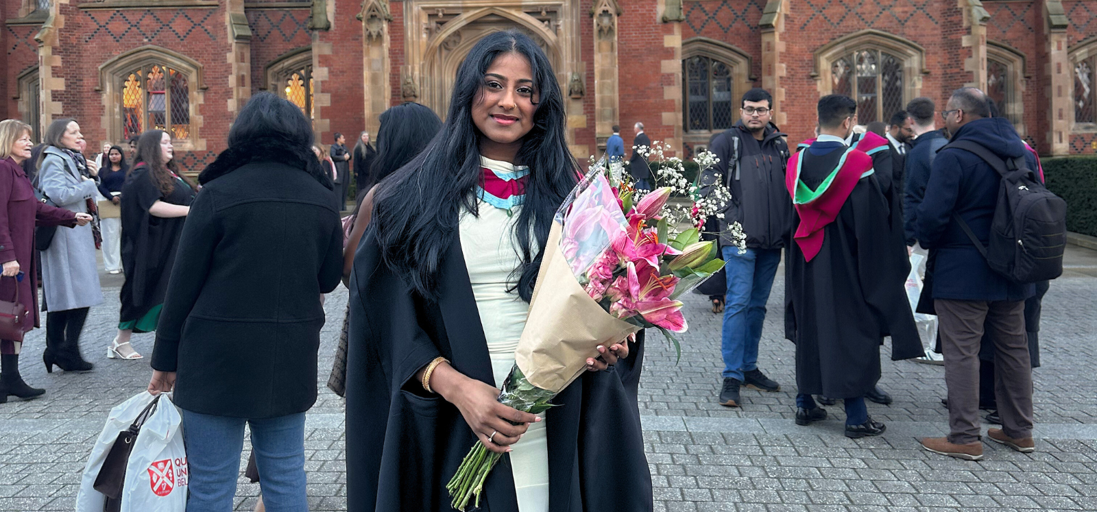 "When I began this MSc, she was undergoing treatment for cancer, and as a family we held onto the hope that by the time graduation arrived she would have made a full recovery and be standing beside us. Being away from home in Belfast during that time was difficult knowing she was unwell while I continued my studies. I was fortunate to have her with me at my undergraduate graduation, which made this moment feel especially bittersweet.”