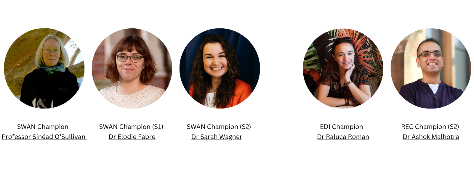 For assistance or advice, staff or students can speak in confidence to SWAN Co-Champion Dr Elodie Fabre, or SWAN Co-Champion Professor Sinead O'Sullivan or the Head of School Professor James Davis.